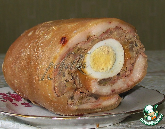 | Ещe один вариант рулетика в свиной шкуре. Хорошая закуска как в виде бутербродов, так и с гарниром из картофеля, макарон... кто с чем любит. |