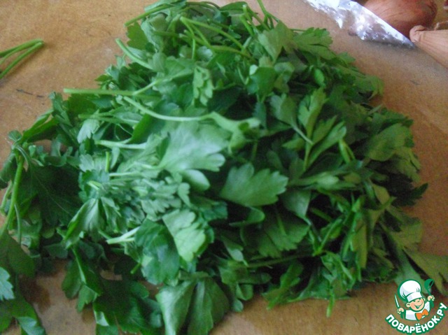 Петрушку я ободрала от стеблей, хотя там этого не было указано, вот такой стог вышел в итоге.