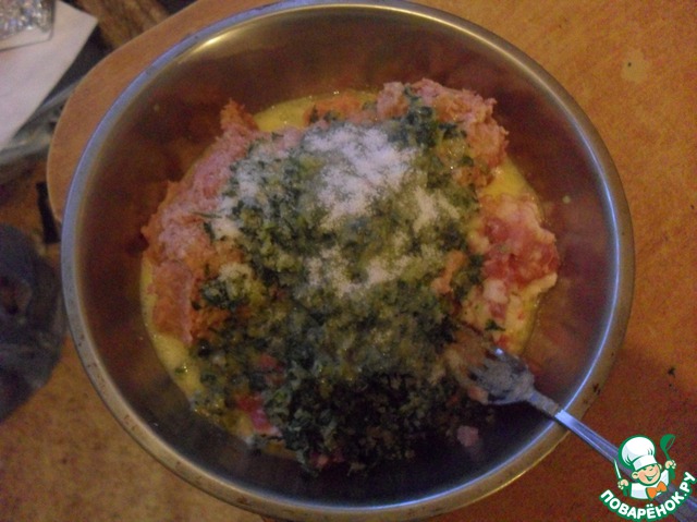 Взбиваем яйца и начинаем смешивать фарш для заумагена.