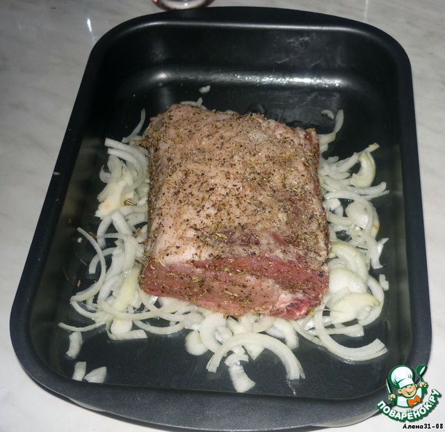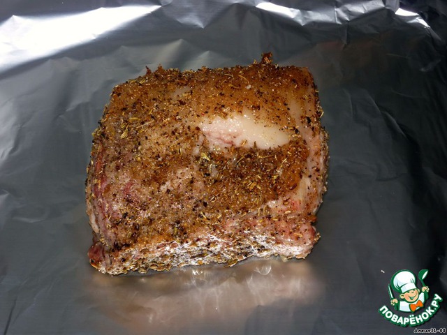 Фенхель, черный перец и соль измельчить. Натереть этой смесью свинину.