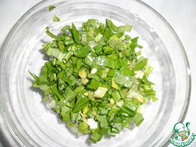 Черемшу промыть, обсушить, нарезать и смешать с подсолнечным маслом "Олейна".