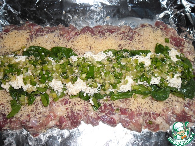 | Весна на кухне без черемши - это, по-моему, не весна. А если соединить черемшу с нежирной свининой, шпинатом, немного сдобрить сыром и подсолнечным маслом "Олейна", получается сытное, и в то же время легкое и красивое блюдо с весенним настроением :). |