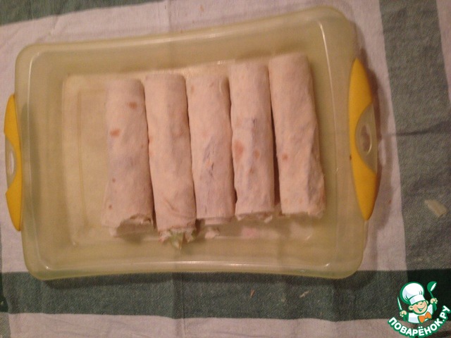 Плотно свернуть рулеты, и поставить в холодильник под прессом, хотя бы на пол-часа.