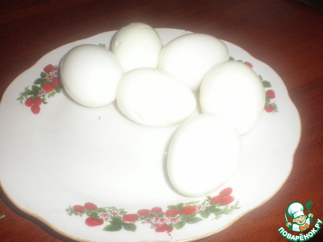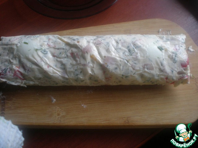 Поднимая аккуратненько края, заворачиваем яйца в желе рулетиком. Закрепляем верхушку и отправляем в холодильник на 3 часа (я ложила на ночь)