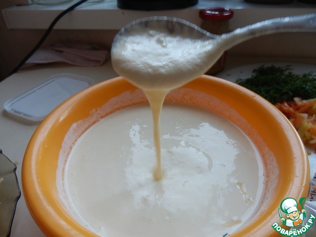 | Рулет собирается минут за пять, остальное время он готовится в духовке. Определенно придется по вкусу любителям солененького. Прелесть рулета еще и в том, что угодить можно каждому члену семьи, условно разделив рулет на зоны. Таким образом, у меня был солененький рулет с укропом, а у мамы с болгарским перцем. |
