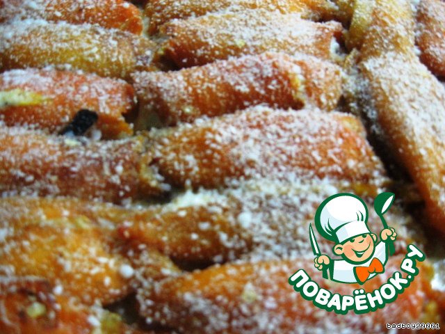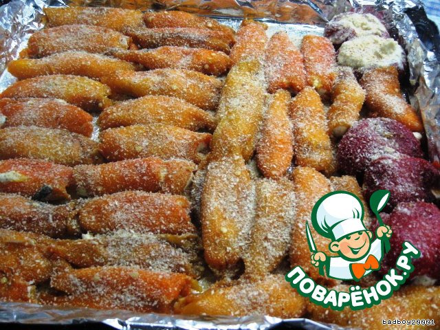 и кладем на смазаный растительным маслом и присыпанный сухариками противень, сверху опять присыпаем сухариками