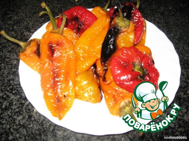 перец помыть и в духовке или на газу обжечь, положить в целлофановый пакет, потом почистить.