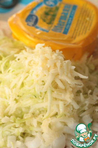 Добавляем натертый сыр минимальной жирности, у меня 9%. Почему минимальной? А зачем, собственно, нам лишние жиры и с ними калории? Нежирный сыр прекрасно подходит для приготовления любых блюд.