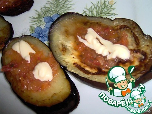 Баклажан разрезать наискосок, поджарить с 2-х сторон до красивого светло-коричневого цвета, выложить на бумажное полотенце, чтобы стекло лишнее масло, выложить на тарелку, помазать аджикой и майонезом и закрутить их.
