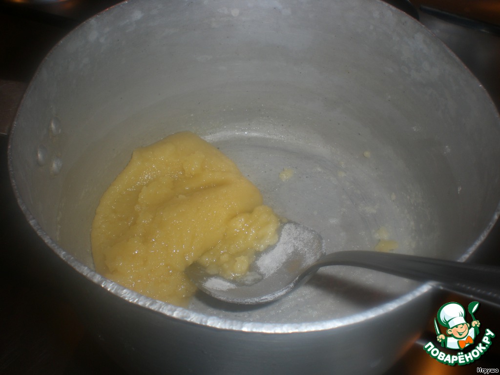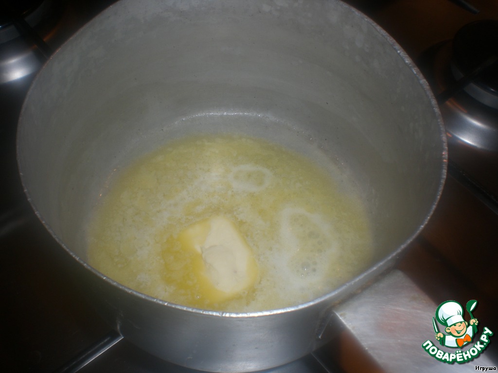 К растопленному маслу добавим муку и, постоянно помешивая, доведём эту массу до однородного состояния.
