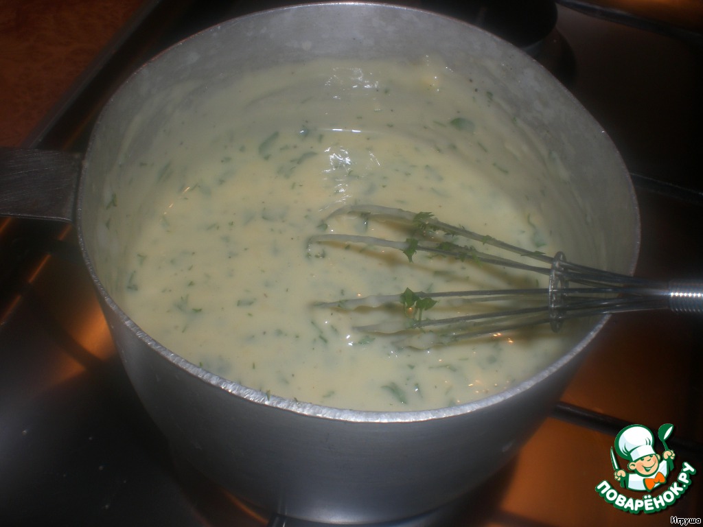 Желтки яиц отделяем от белков. Желтки немного перемешиваем и вводим в получившийся соус, не переставая помешивать.