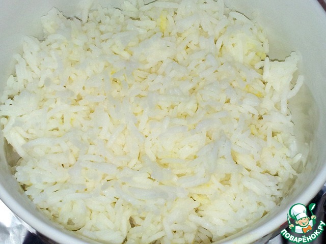 Отварила рис басмати в подсоленной воде. Разбила в пиалу яйцо, добавила сухой базилик, перец острый, куркуму и взбила вилкой до однородности. Получившуюся смесь вылила в рис и хорошо перемешала.