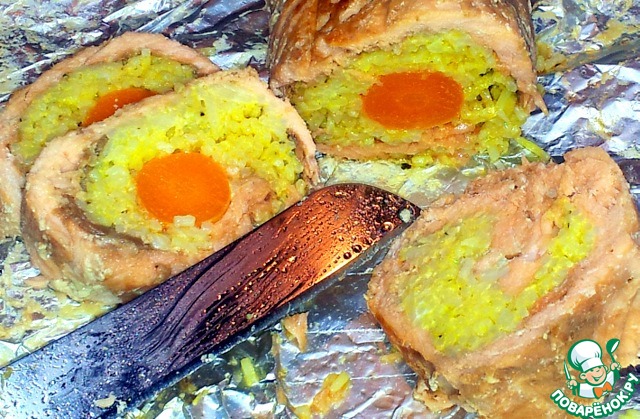| Лосось люблю во всех видах - жареный, солёный, вареный... Сегодня я приготовила рулет запечённый в фольге с рисом и морковью. |