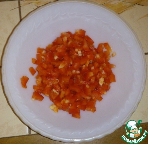 Начинаем подготавливать овощи. Мелко режем половинку болгарского перца