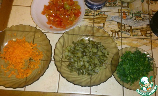 Вот все они в сборе. Помидорки смешаны с болгарским перцем