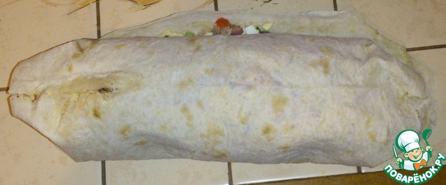 Все, через пол часа можно доставать и радоваться вкусу. И да, лаваш тонкий, а овощей много и она сочная. Рулет размокает и рвется. Поэтому заверните рулет в еще один лаваш или поделите все ингредиенты напополам и сделайте два рулета. Всем Приятного Аппетита и, как обычно - Всем АНГЕЛА!