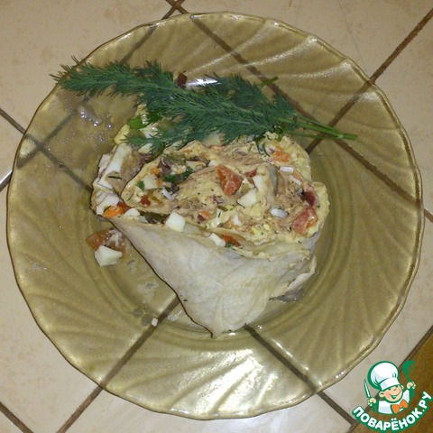 Рулет с тунцом с нестандартным соусом-с Колбасным Сыром