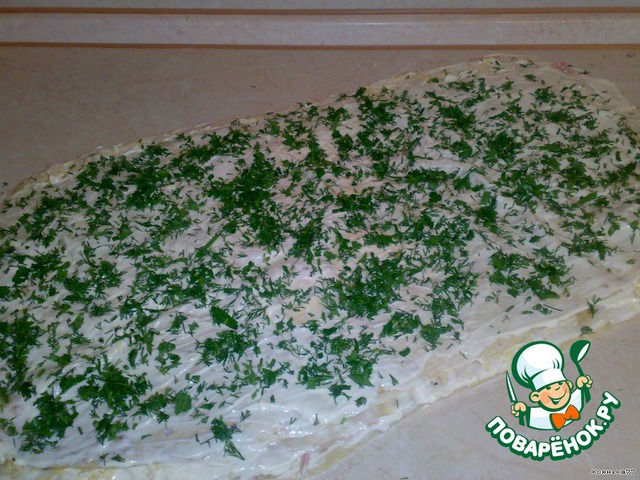 И посыпаем измельченной зеленью (у меня укроп и петрушка - по 2 пучка каждой зелени).