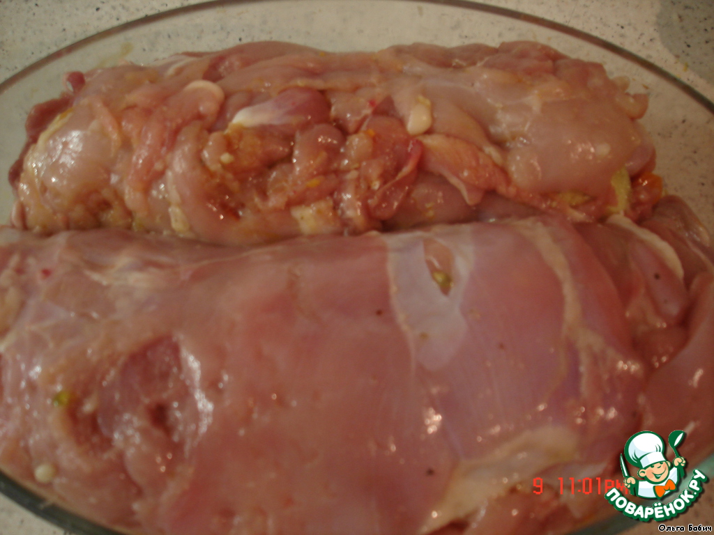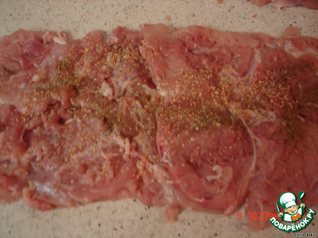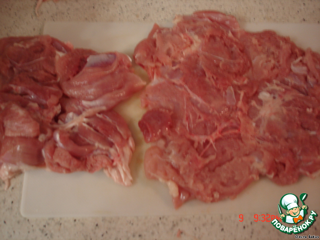 Мясо ножки отделили от кости, сняли кожу, отбили