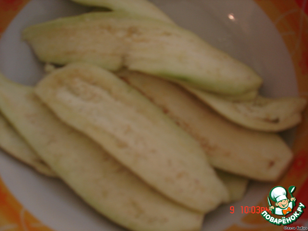 Сверху баклажаны (предварительно промыть от соли и отжать)