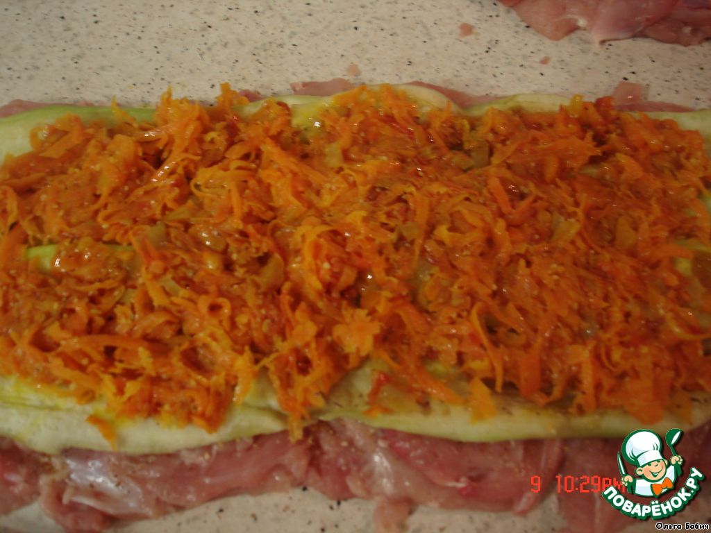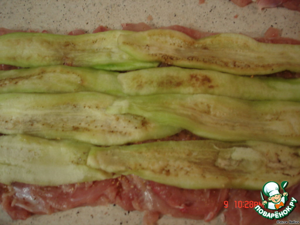 Свернули рулетом и положили в смазанную маслом фориу