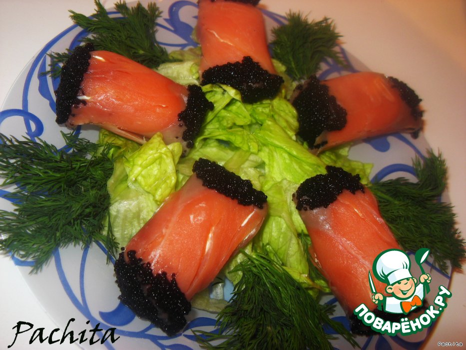 | Малосольная красная рыбка с нежным творожным кремом и икрой. Вкусная, праздничная закуска. Достойное украшение стола!!! |