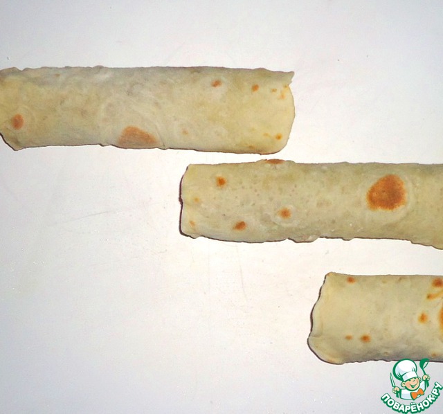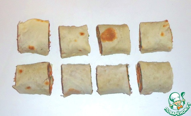 Аккуратно сворачиваем в рулеты. По желанию рулеты можно подогреть.