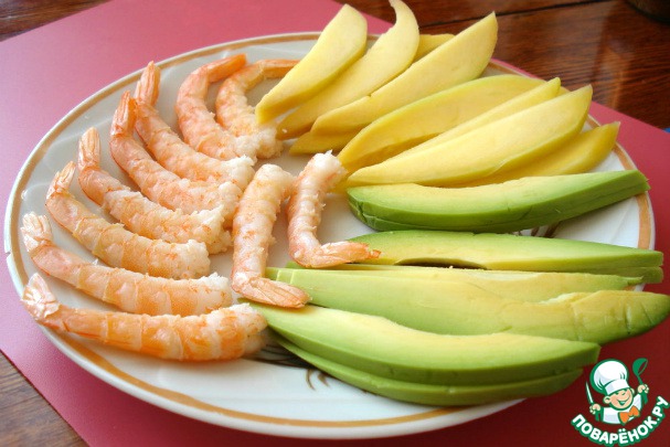 | В этой закуске лёгкий, нежный вкус креветок настолько потрясающе сочетается с авокадо и сочным манго. А изумительный соус способен оригинально дополнить, или совсем преобразить вкус, придавая новое звучание блюду!!! |