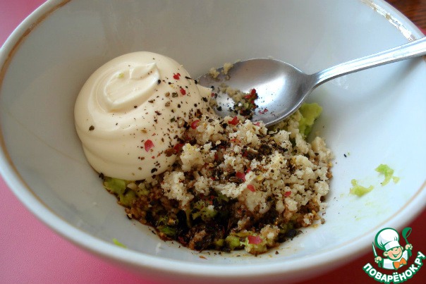 К авокадо добавляем орешки, майонез, соевый соус, чеснок, смесь перцев и всё хорошенько перемешиваем. Вот и всё, наш соус готов.