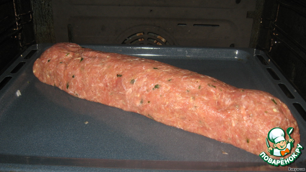 Запекать при температуре 175—180 °С, время от времени поливая рулет бульоном или водой.