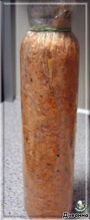 Завязать края, подтягивая края пленки. Получится такая рыбная конфетка.
