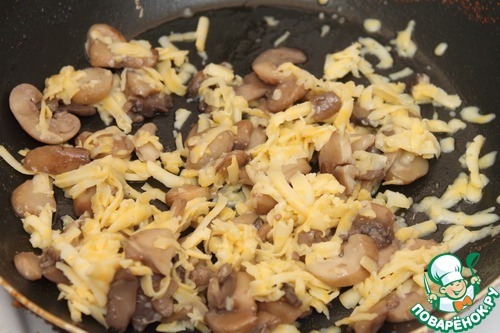 Сыр натереть на терке. Добавить к грибам. Перемешать.