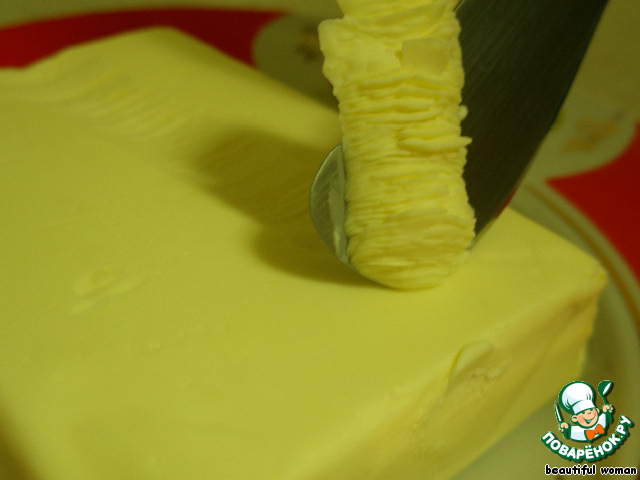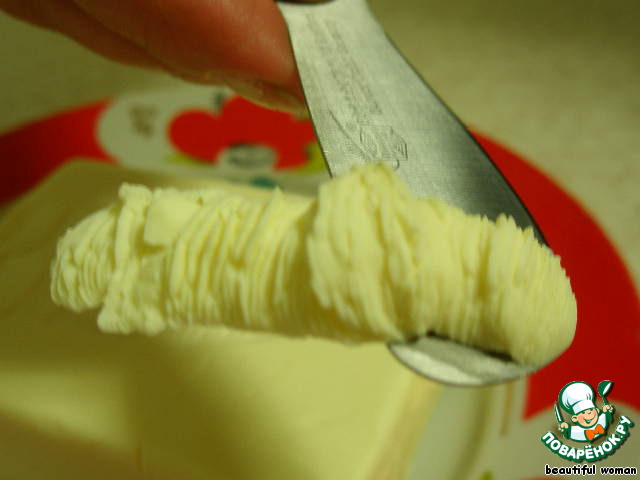 Протягиваем ножом вдоль всего куска масла снимая