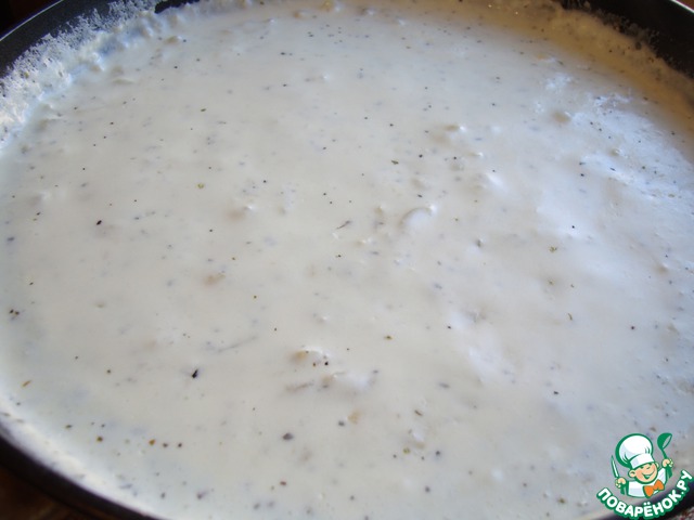 - затем, постоянно помешивая, добавьте небольшими порциями сливки,