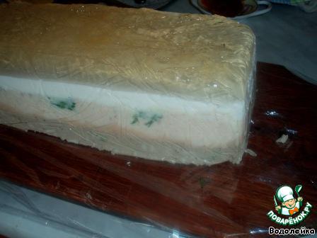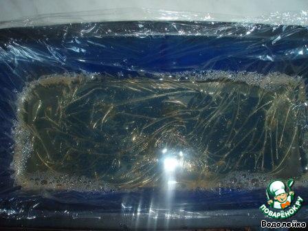 В конце добавляем разведенный желатин (развести так же, как и для ветчинного слоя).