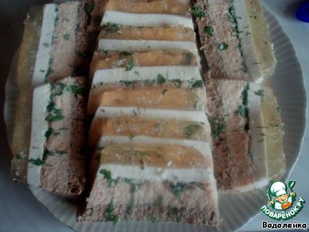 | Рецепт этого блюда я увидела в кулинарном журнале и решила приготовить на юбилей. На приготовление надо, конечно, потратить время, но оно того стоит. Паштет получился очень нежным и вкусным. Каждый слой очень хорошо дополнял друг друга. |