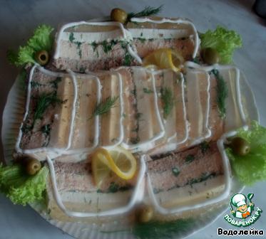 Форму убираем, а пленку с готового слоеного паштета снимаем.