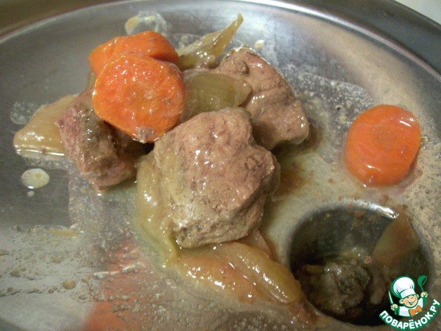 Сначала ставим отваривать телячье сердце одним куском, варим часа 2, немного присолив. Если у вас сердце от взрослой коровы, нужно поварить до мягкости. Пока варится сердце, режем на крупные кусочки печенку, лук и морковь, быстро обжариваем на растительном масле в глубокой сковороде (у меня вок), солим, перчим по вкусу. Затем прокручиваем через мясорубку печенку с луком и морковкой.