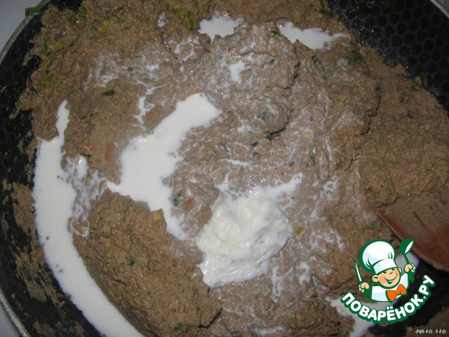 Сливки (оставшиеся 150 мл) подогреваем и добавляем к печени. Хорошо смешиваем и прогреваем на огне минут 5.