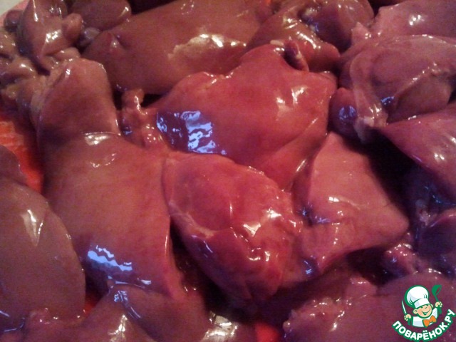 Печень разрезаем на два-три кусочка, очищаем от лишних пленок.