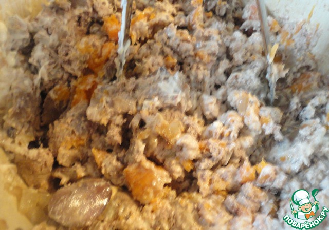 Соединаем печень, морковь, жареный лук, сливочное масло. Добавляем щепотку соли.