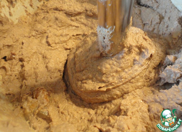 Можно составляющие паштета пропустить через мясорубку, но блендером будет нежнее. Идеально это взбить в чаше блендера с нижними ножами. У меня данный дивайс от блендера поломался, поэтому приходится обходиться погружной насадкой. Тем, у кого та же проблема, рекомендую предварительно передавить будущий паштет толкушкой для картофеля.
