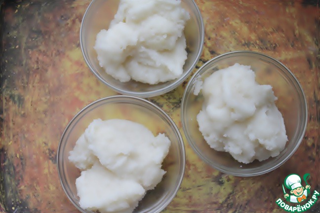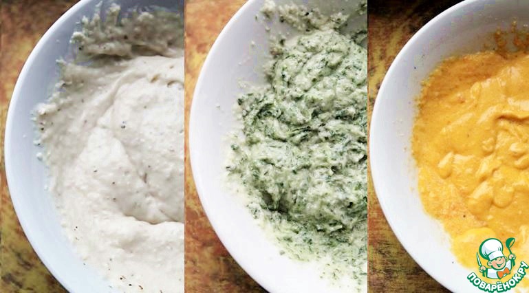 Для удобства, я сразу разделила в три тарелочки - это, примерно, по 2 ст. л.