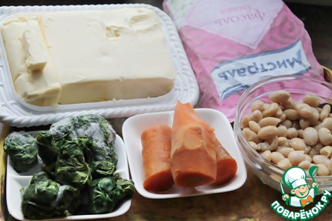 Также нам понадобится хорошее сливочное масло, вареная фасоль, вареная морковь и шпинат (я заготавливаю сезонный, в морозилке). Овощи можно взять и другие, например, немного вареной свеклы, горох и. т. п.