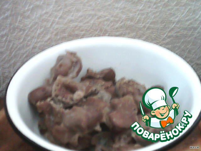 Куриные печенки и сердце тщательно вымыть и очистить.