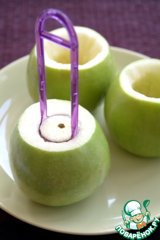 Смешать соевый соус с медом и лимонным соком. Смазать яблоки внутри.