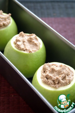 Нафаршировать паштетом яблоки. Накрыть "крышечкой" и запечь в духовке при 180*С 20-25 минут.