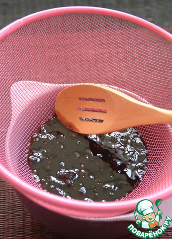 Протереть соус через сито, чтобы ежевичные косточки удалить.