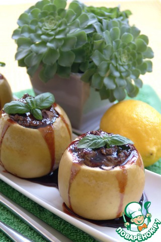 Яблоки, запеченные с нежным куриным паштетом, под ежевичным соусом