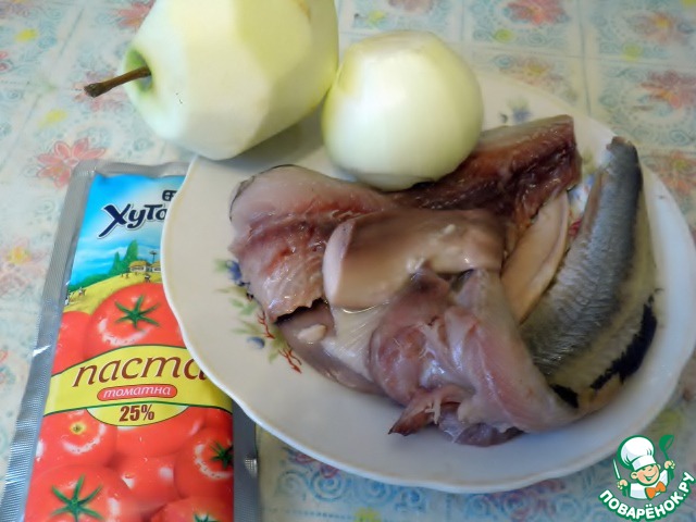 Лук и яблоко очистим, у яблока вырежем сердцевину и все измельчим в блендере вместе с кусочками филе сельди.